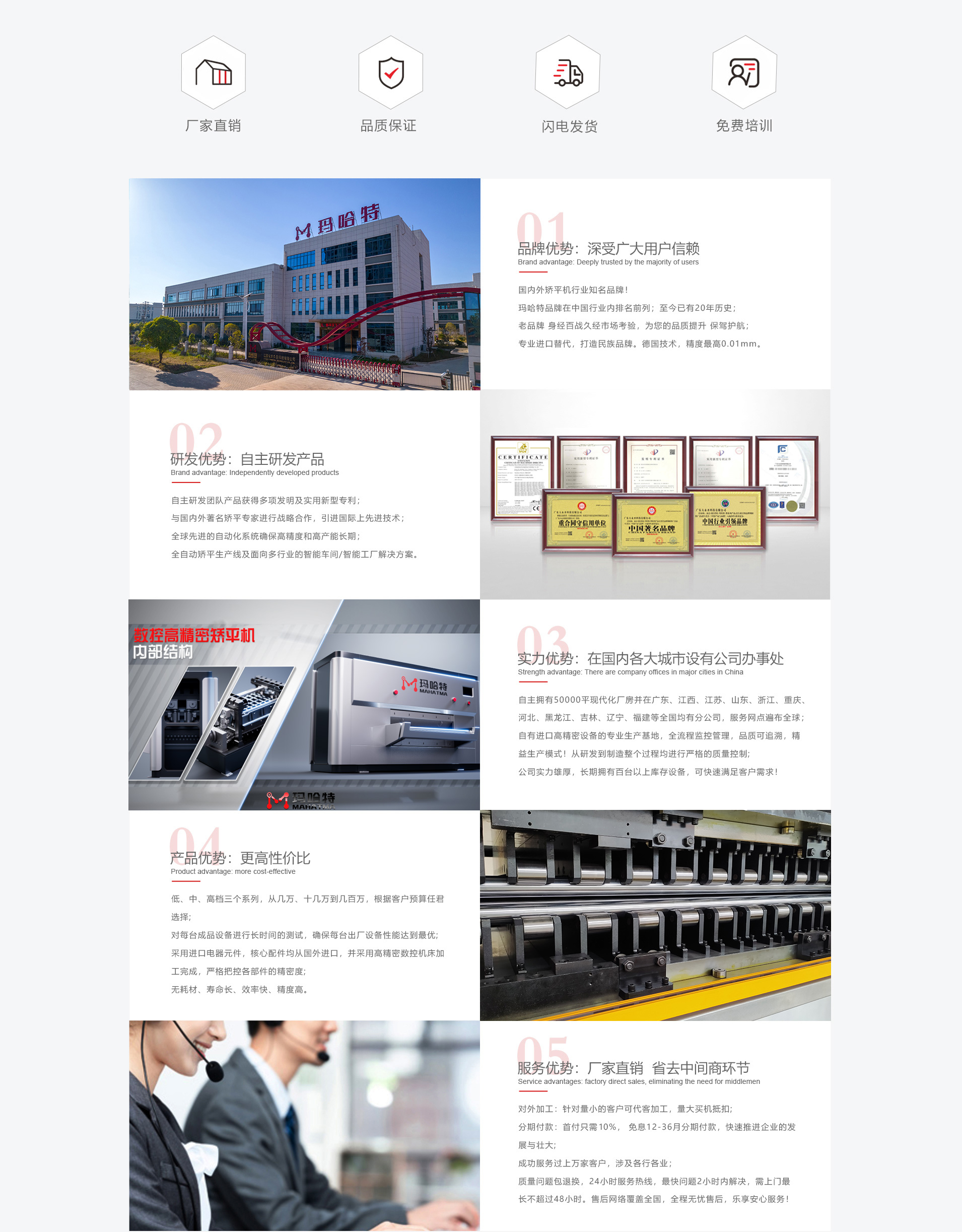 廣東瑪哈特智能裝備有限公司以助力智能制造國產(chǎn)替代與產(chǎn)業(yè)升級為使命,自2003年成立以來,在矯平機、自動化產(chǎn)線、智慧系統(tǒng)及配套搭載設(shè)備等前沿創(chuàng)新領(lǐng)域,不斷地革新技術(shù)產(chǎn)品與解決方案。瑪哈特是一家集研發(fā)、生產(chǎn)、銷售、服務(wù)四位一體的鈑金零件矯平智造解決方案服務(wù)商。是具有全球競爭力的國際高端矯平設(shè)備智造領(lǐng)導(dǎo)品牌,同時也是國家高新技術(shù)及專精特新企業(yè)。瑪哈特作為智慧超級矯平技術(shù)設(shè)備的品類開創(chuàng)者,實現(xiàn)了從低端到高端矯平設(shè)備的全品類覆蓋,且二十余年的行業(yè)積累與技術(shù)創(chuàng)新,瑪哈特的制造工藝與矯平精度均已達到國際最先進水平。